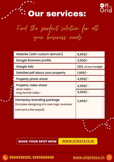 Our services are tailored keeping in mind the needs of homestay owners and local businesses, so that we can provide them to you and help you reach your ideal customers. From the comfort of your homes.